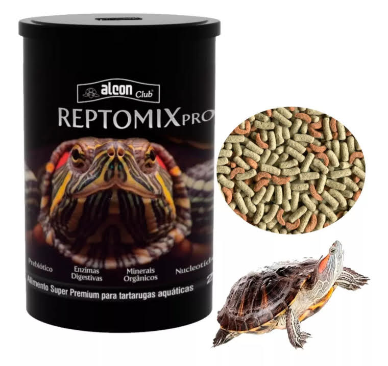 É composto pelo alimento extrusado em bastões Alcon Club Reptolife e pelo alimento extrusado em formato de camarões, que é muito nutritivo e apreciado pelas tartaruga aquáticas.