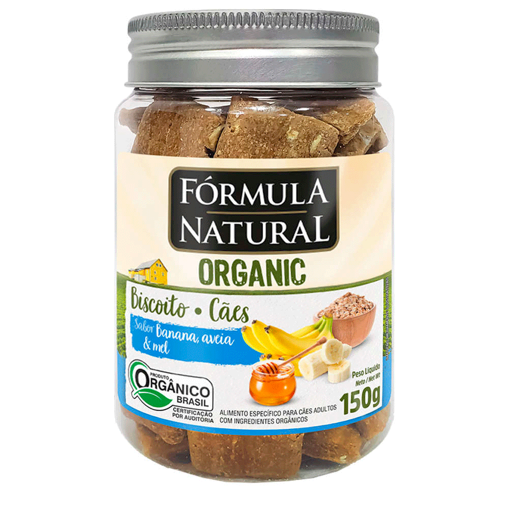 Preparado com ingredientes frescos o Biscoito Fórmula Natural Organic Banana, Aveia e mel proporciona um sabor irresistível que agrada cães de todas as raças e tamanhos. Além disso, sua fórmula é facilmente digerida e não possui ingredientes transgênicos e corantes artificiais.