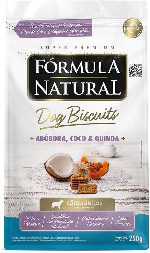 Formulado com ingredientes de alta qualidade, saborosos, saudáveis e nutritivos, favorecendo as articulações e saúde oral do seu amiguinho, o Biscoito Fórmula Natural Dog Biscuits Abóbora, Coco e Quinoa para Cães Adultos Raças Médias e Grandes é rico em antioxidantes naturais e proporciona benefícios para pele e pelagem.