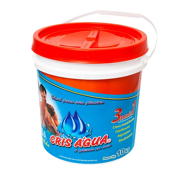 4 – Dissolva o Cloro 3mais1 CRIS ÁGUA em um recipiente plástico limpo com água e espalhe a solução sobre a superfície da piscina. Filtre a água diariamente pelo tempo suficiente para que todo o volume de água passe pelo filtro;