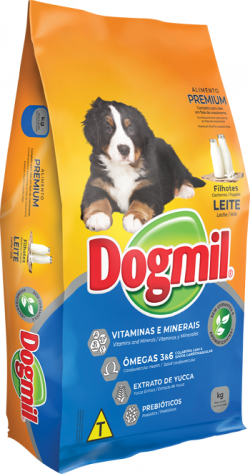 Dogmil é produzido com proteínas de origem animal que oferecem aminoácidos e ácidos graxos das famílias ômega 3 e 6, essenciais para o transporte de vitaminas, fornecimento de energia e palatabilidade, sendo também enriquecido com vitaminas e minerais, que promovem benefícios ao funcionamento do organismo dos cães.