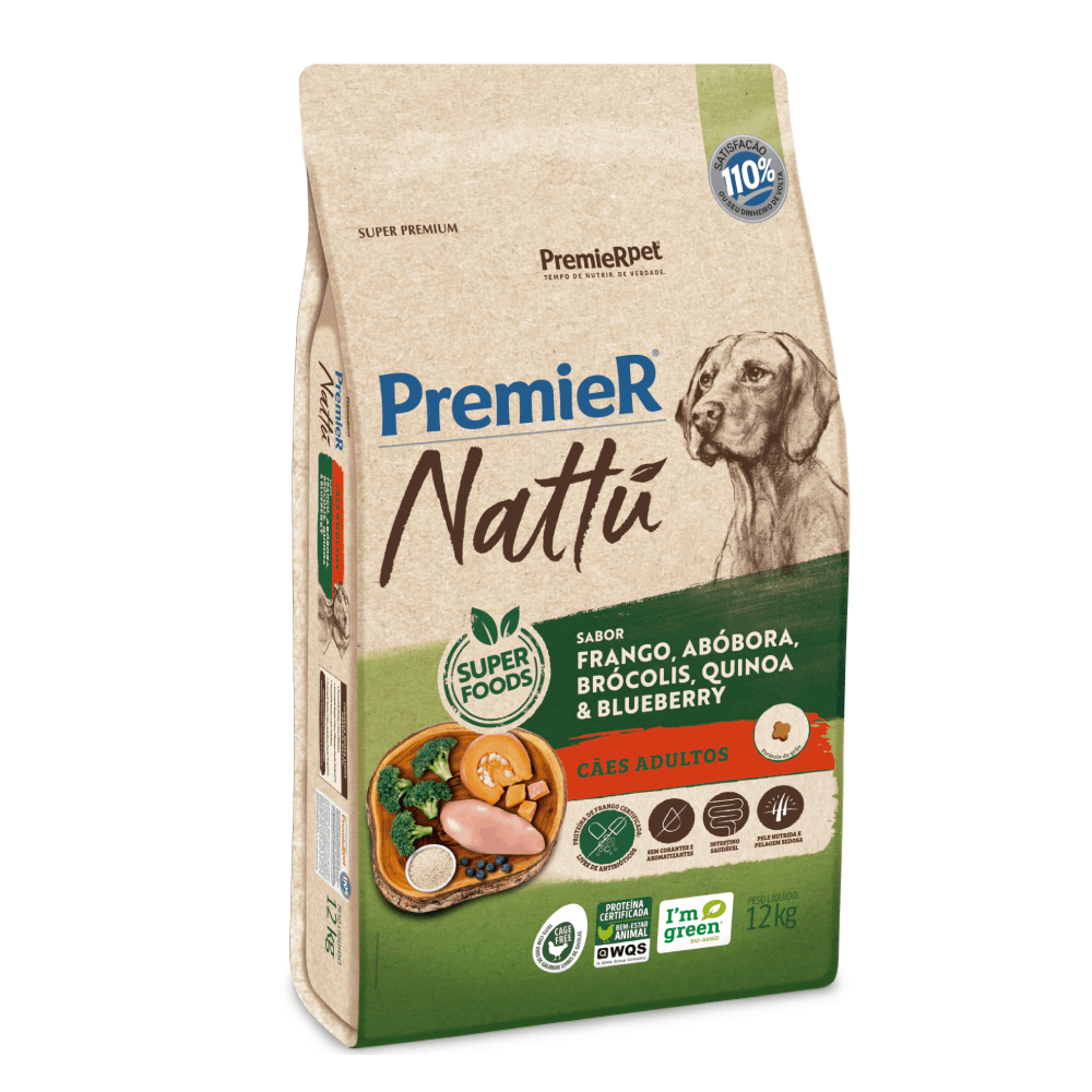 Livre de corantes e aromatizantes, a Ração Nattu da Premier é recomendada para cães adultos por trazer em sua formulação ingredientes de alta densidade nutricional, oferecendo nutrientes e poucas calorias, ideal para uma dieta equilibrada.Unissex